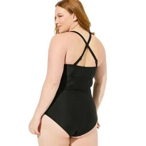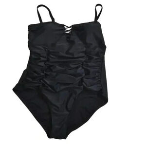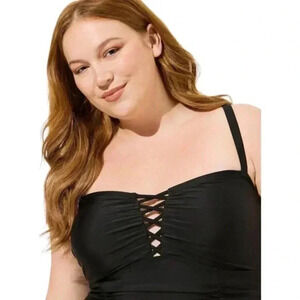 Torrid Slim Fix Wireless Lattice Front One Piece Swimsuit Black Size 3