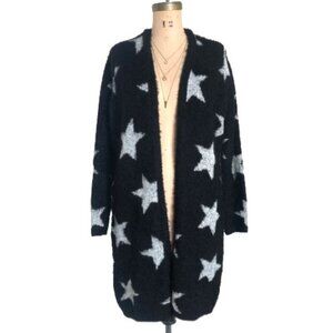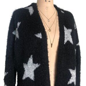 Torrid Star long Cardigan Sweater Fuzzy Black & silver Sz 00