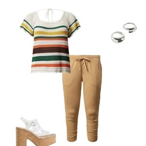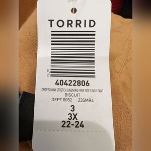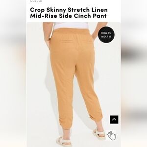 Crop Skinny Stretch Linen Mid-Rise Side Cinch Pant plus size 3x. New with tags. The colour is called biscuit it's a golden tone.