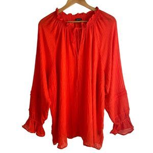 Torrid Stripe Gauze Lace-Up Orange Peasant Top Torrid Size 3
