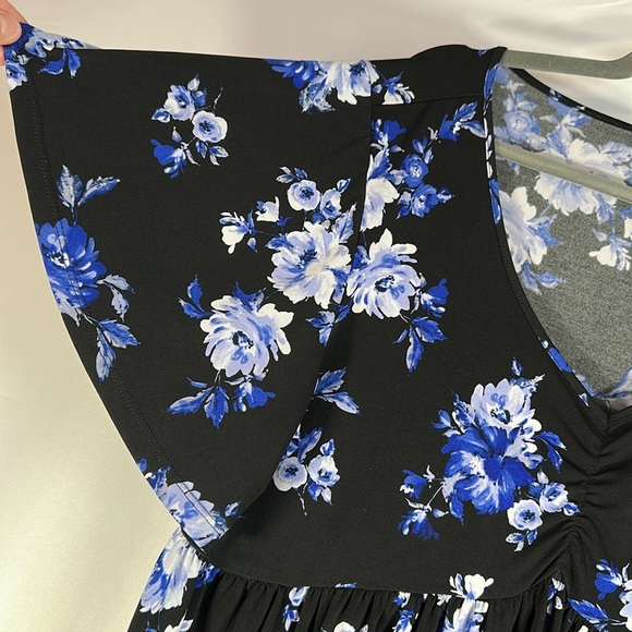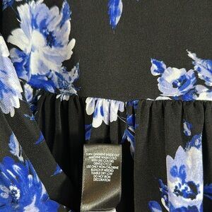 Torrid Studio Knit Black & Blue Floral Cinch Front Babydoll Blouse Top