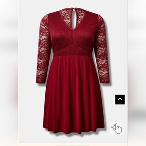Torrid Studio Knit Lace Fit N Flare Dress, rhubarb plus size 1x
