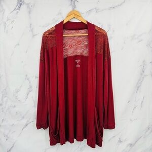 Torrid Super Soft Cardigan Lace Yoke Open Front - Brown