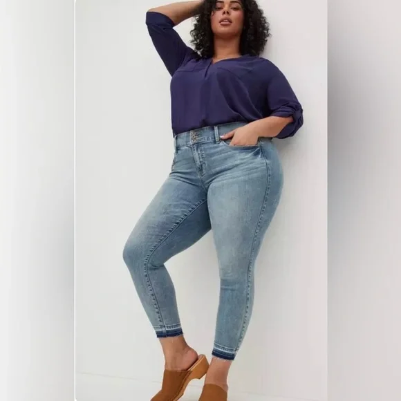 • Fit/Cut: High rise with a super skinny fit from hip to ankle. These feature a signature 3-button waistband designed for a little smoothing and maximum comfort.