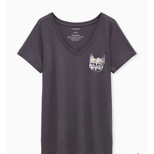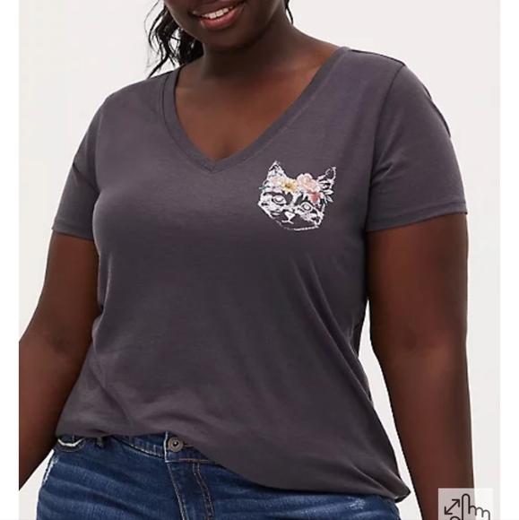Torrid v neck t-shirt size 1 (slim fit), dark grey with a print of cat wearing a flower crown. Very good used condition, worn less than 5 times but no longer fits.