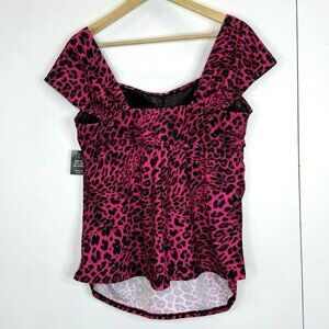 Torrid Tankini Swim Top Womens Plus Size 2X Wireless Cap Sleeve Pink Leopard NWT