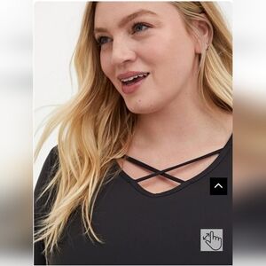 Torrid Tech Jersey Strappy Short Sleeve Active Tee, gray black 3x