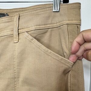 Keywords: Torrid utility pants, striped cropped trousers, casual tan pants