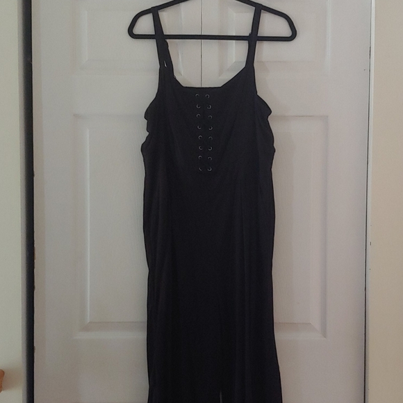 Worn once, has adjustable straps, pockets, lightweight fabric and wide legged