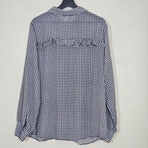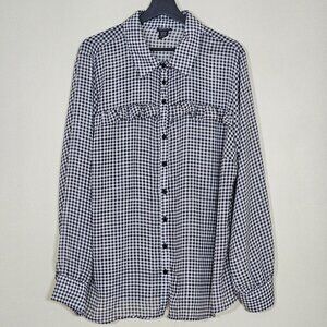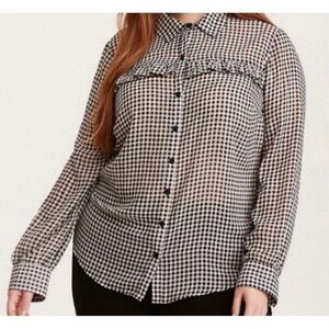 Torrid Top Womens 2X Black White Gingham Buttons LS Ruffles Boho Cottagecore