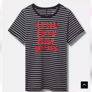 Torrid True Love has Paws Cotton Crew Neck Tee black & white stripes Sz 3x. New with tags