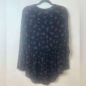 Torrid Tunic Womens 1X Black Red Roses Floral Emma Crinkle Knit Hi Lo Button Up