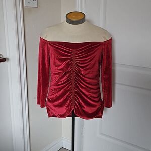 Torrid Velvet Off The Shoulder Shirred Front Top 1X 14-16 Ruby Red
