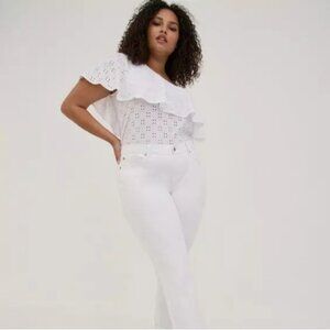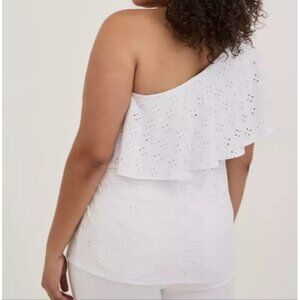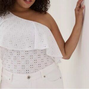 Torrid White Blouse with Ruffled Sleeve and Asymmetrical Neckline Plus Size 4X