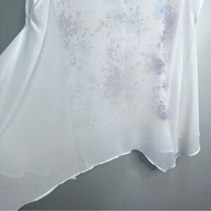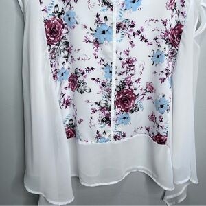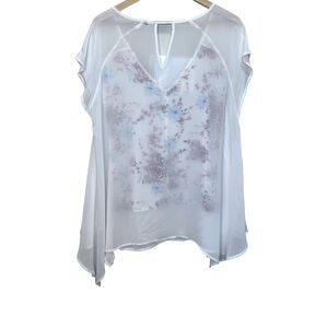 Torrid White Floral Sheer Back Hanky Hem Blouse