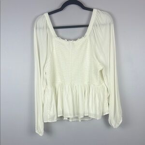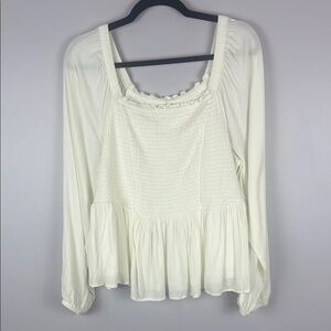 Torrid White Rayon Slub Smocked Bodice Long Sleeve Crop Blouse Size 1