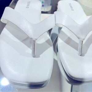 Torrid White Square Toe Thong Sandlal Flip Flop Faux leather sandals 9.5WW