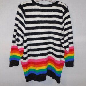 Torrid Womens 4 Black White Rainbow Striped Fuzzy eyelash Pullover Sweater