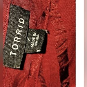 Torrid Womens Faux Wrap Top Plus 2 Maroon Elastic Waist Sheer Elegance Ethereal