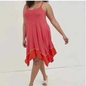 Torrid Womens Plus Size 3X Shark Bite Trapeze Jersey Sundress Pink Orange NEW
