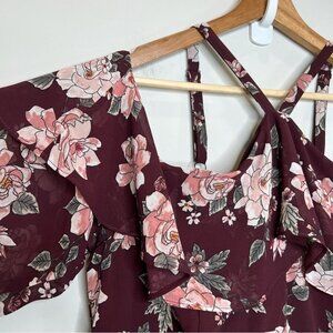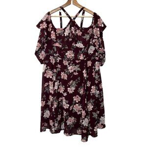 Torrid Womens Size 16 Burgundy Floral Cold Shoulder Ruffle Dress NEW Longsleeve
