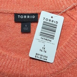 Torrid Women's Sweater Size 1X Coral Tiger Graphic Knit Raglan