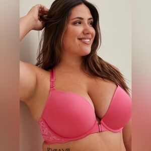 Torrid XO Pink Plunge Push-Up Front-Close Underwire Lace Bra Size 46DDD