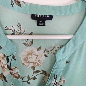 Torrid button down sheer blouse, Size 2, Floral Mint Green, High low hem.