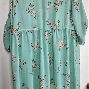 Torrid button down sheer blouse, Size 2, Floral Mint Green, High low hem