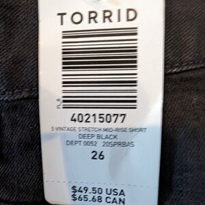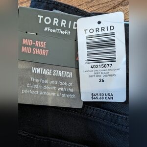 Torrid boyfriend 5 Inch vintage Mid-Rise Short, black denim, plus size 26. New with tags.