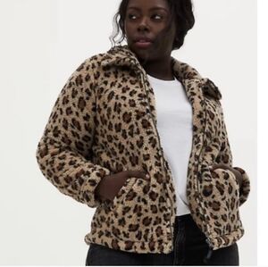 Torrid faux fur jacket, Sherpa leopard print, Plus size 1x