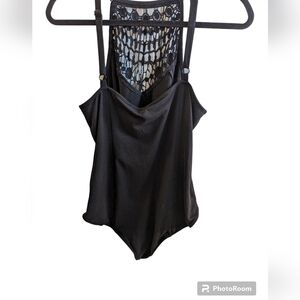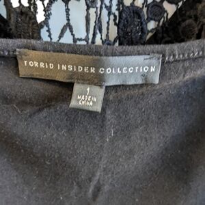 Torrid insider collection plus size body suit. in great condition. lace on the front bodice. spaghetti straps in a newer style. great casual wear would look great with jeans and a light jacket with heels. boho look. snaps in the crotch.