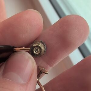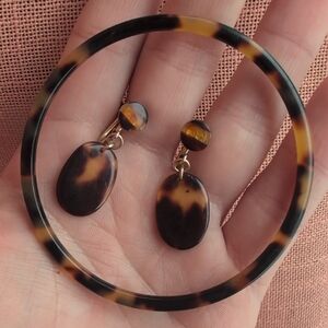 Vintage faux tortoise shell bangle and 14k ygf earring set (screw back/screw on), perfect for adding a touch of sophistication to any outfit.