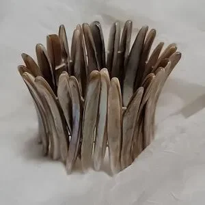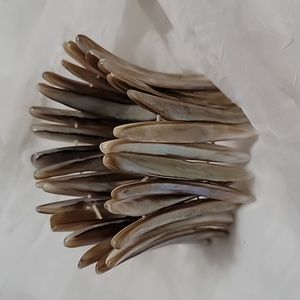 Gorgeous tortoise shell cuff made of individual shiny shell pieces, fitted together with elastic for ease of use. Shiny and prestine. Delicate but tough.