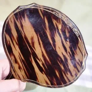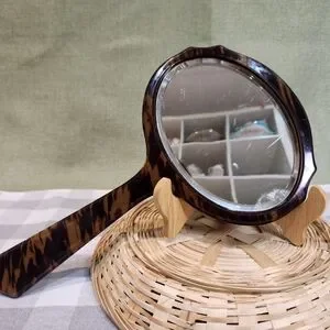 Elegant vintage lucite tortoise shell handheld mirror. Perfect for daily use or display.