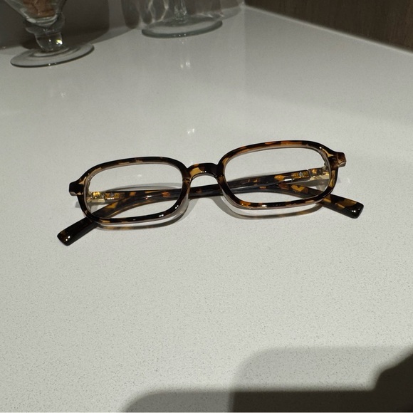 Stylish tortoise shell rectangular glasses. Perfect for a chic look.