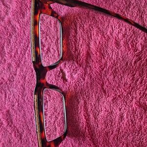 Stylish square glasses with a tortoise shell pattern. Perfect for a bold look. gold trim design across top of glasses. reading glasses +350