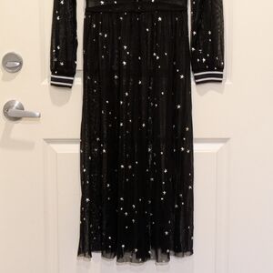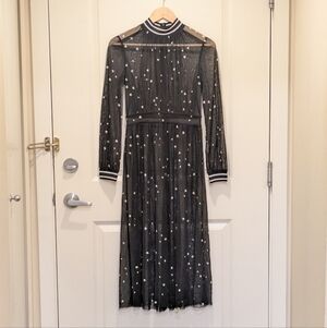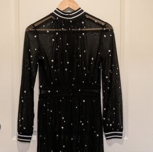 Tory Burch 0 Sheer Stretch Mesh Silver Star Print Dress with Sparkle Collar