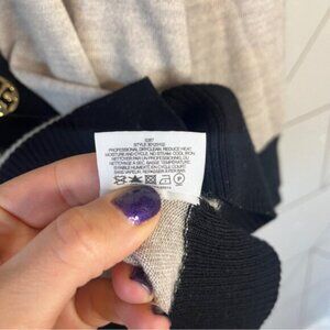 Tory Burch 100% Merino Wool Boyfriend Cardigan Black Beige in excellent pre worn condition. Please see all photos.