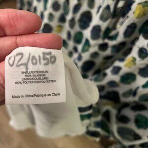 Tory Burch blouse with a beetle/insect pattern. EUC. The bodice is lined (not the arms) and there is a small button enclosure at the neck. Vintage blouse. Originally on sale for $150. P2P: 20.5 inches. Length: 28 inches. Non-smoking, non-pet home.