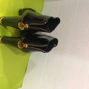 Tory Burch Bl. Open Toe Ankle Boots w Gold Accents