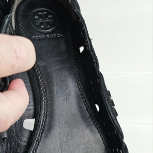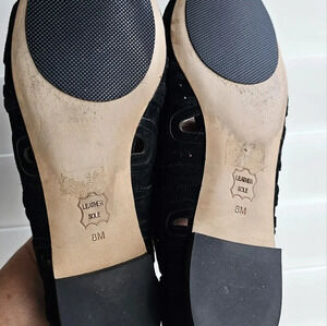 Elegant black flats with intricate cut-out design. Perfect for any occasion.