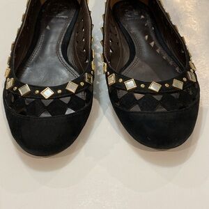 Tory Burch Black Flats Suede Ballerina Flats Kingsbridge Size 6.5