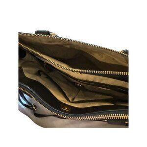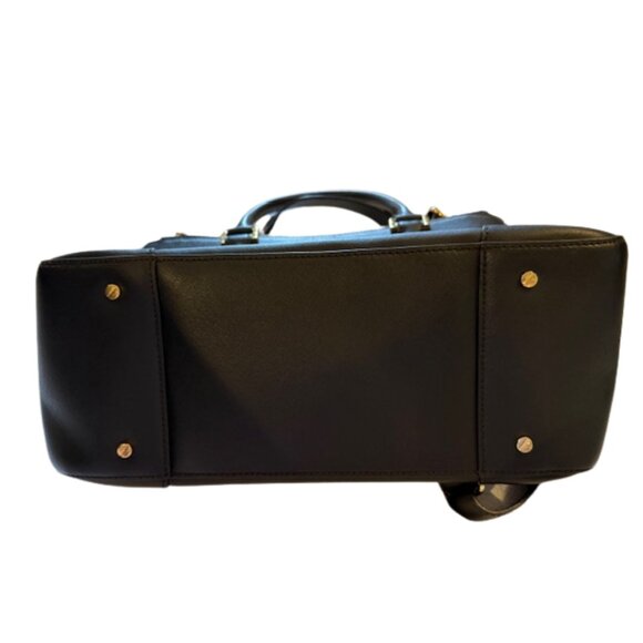 The Tory Burch Black Satchel is a sophisticated accessory featuring a structured design and smooth leather finish. Its gold-tone hardware and double top handles add a touch of elegance, making it perfect for everyday use. The deep black colour and sleek silhouette ensure a timeless appeal! Shoulder strap and dust bag included. Barely used - in great condition!