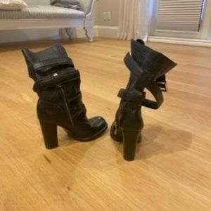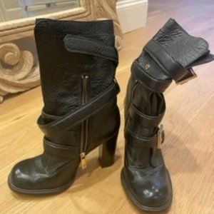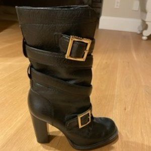 Tory Burch Jaden leather boot. Side zip and wrap around strap.