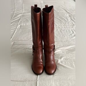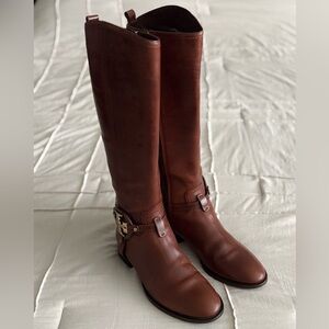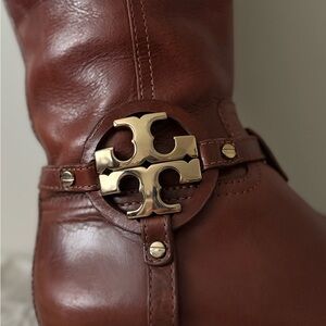 Tory Burch Brown Leather Logo Riding Boots 8M