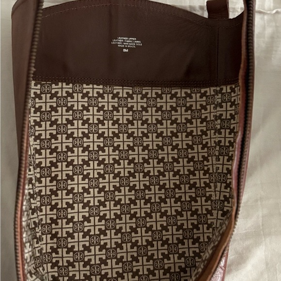 These authentic Tory Burch riding boots are crafted from supple brown leather with gold-tone logo hardware at the ankle. Full side zip for easy wear, leather + fabric lining with signature Tory Burch logo print interior. A wardrobe classic that pairs beautifully with jeans, skirts, or dresses.