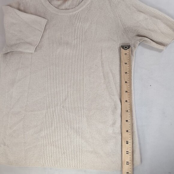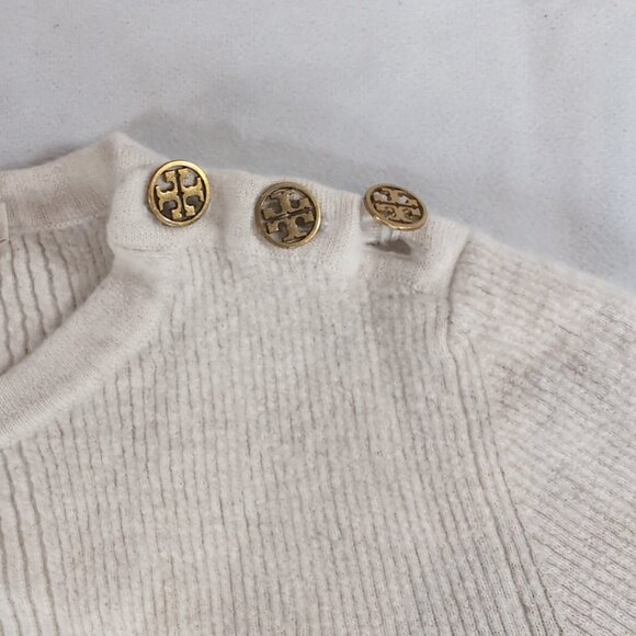 Tory Burch Cashmere Stud Short Sleeve Knit Sweater Cream Beige S Gold Buttons