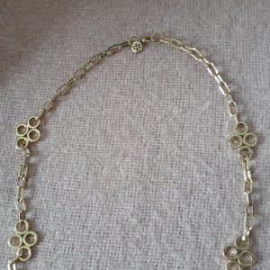 - Gold necklace, box-link chain with 10 clover-inspired stations