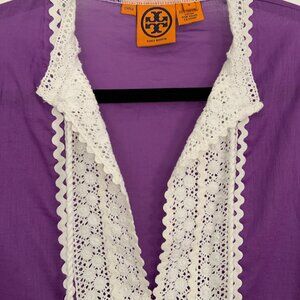 Tory Burch Cotton Purple Boho Marissa Poplin Peasant Tunic Blouse Top Embroidered Size 8